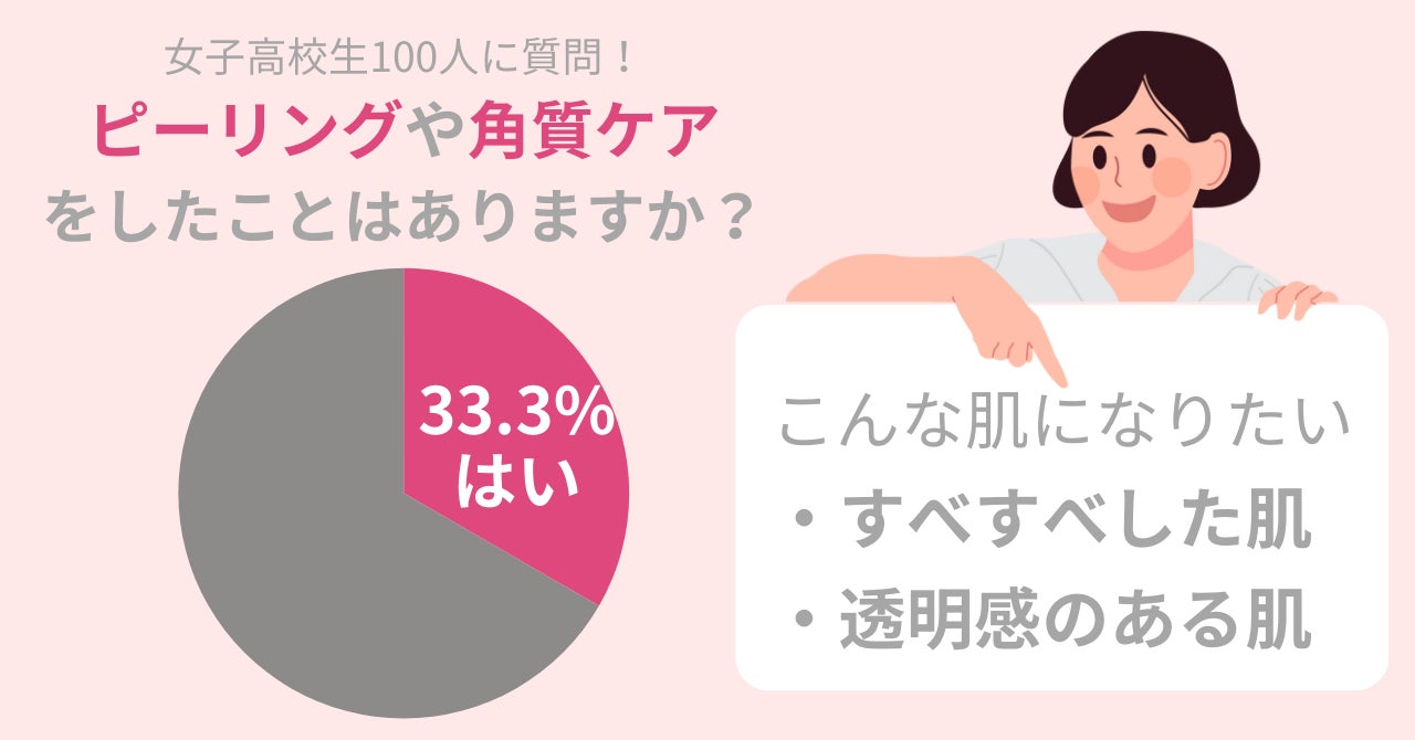 株式会社アースケアは16〜18歳の女子学生100名に「ピーリング・角質ケア」に関する調査を行いました。<調査結果>33.3%の女子高校生がピーリングや角質ケアをしたことがある