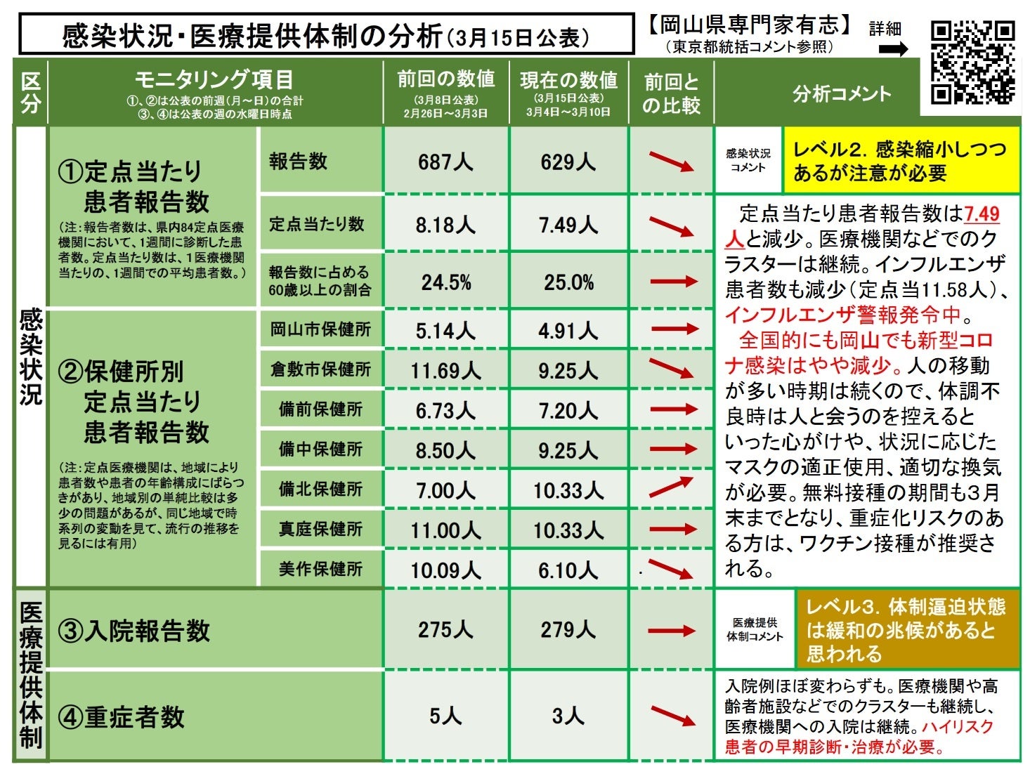 ◆感染状況・医療提供体制の分析〔2024年 3月 15日(金)現在〕