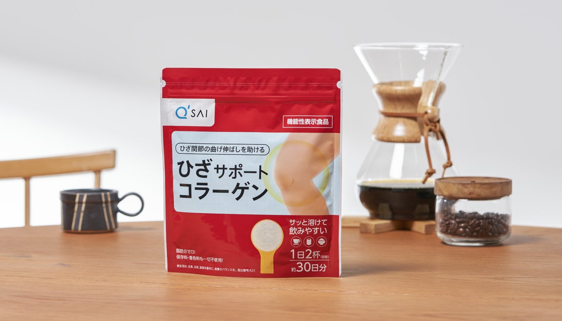 当社はカラダもココロも健康で、前向きに年齢を重ねる “ウェルエイジング”な世の中の実現をミッションとして掲げ、ヘルスケア商品・スキンケア商品を展開しております。中でもひざ関節の曲げ伸ばしを助ける機能性表示食品「ひざサポートコラーゲン」は当社の主力商品です。