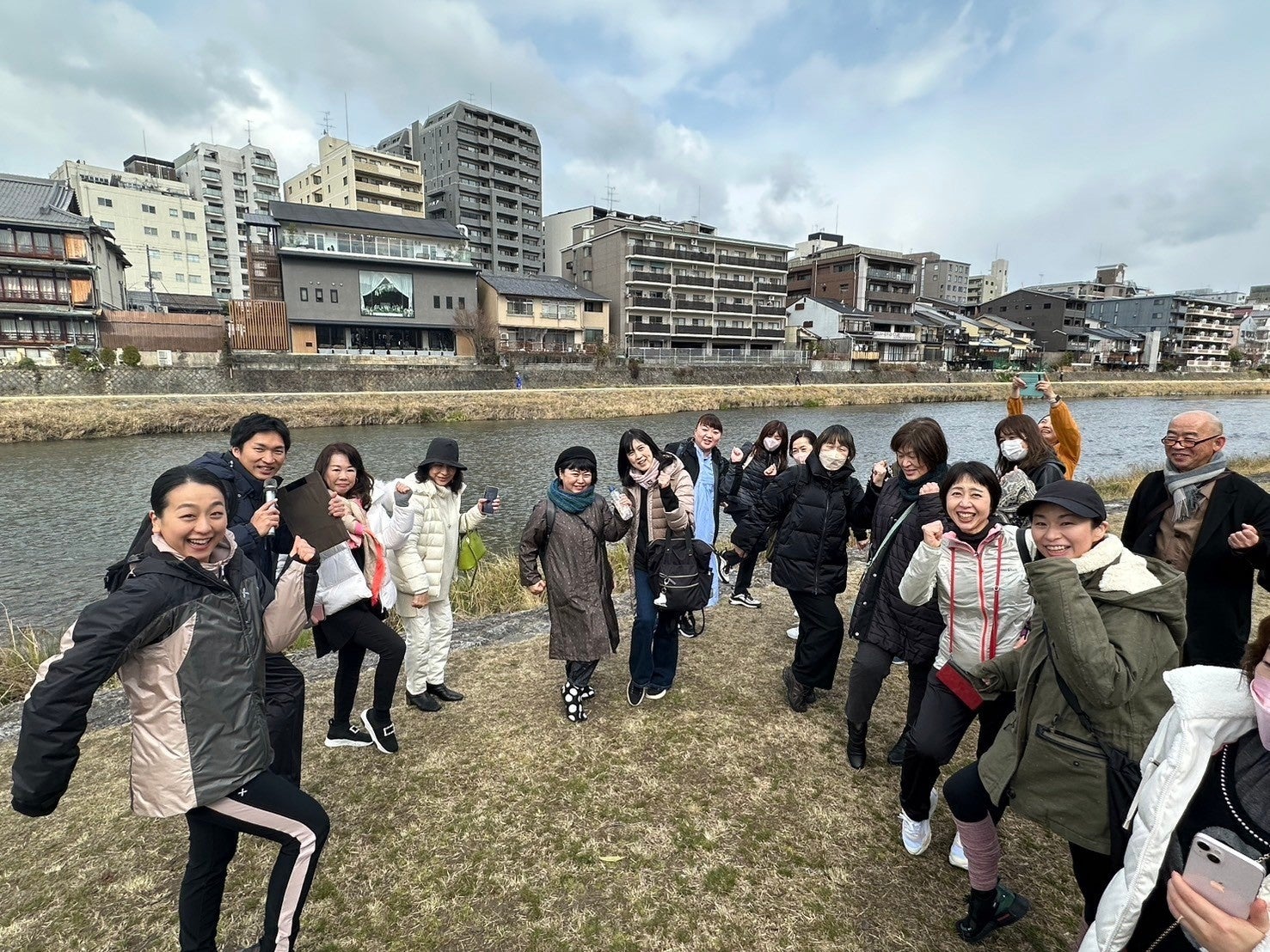 京都市中心部を南北に流れている鴨川。桜、紅葉と四季折々の景色を見ることができる人気スポットで、浅田真央さんと参加者との個別記念撮影となりました。浅田真央さん考案の“ひざコラポーズ”も披露して、参加者と和気あいあいとした時間を過ごしました。