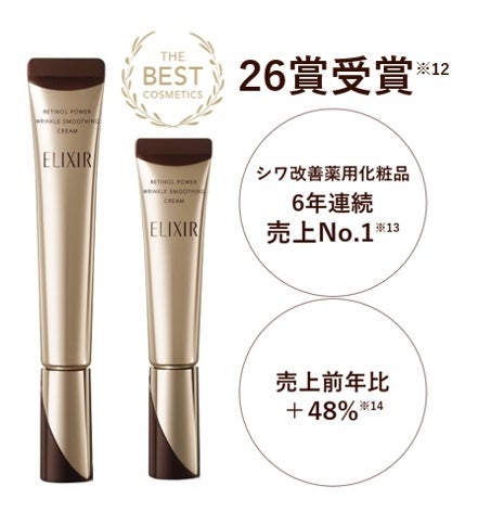 「エリクシール」は、1983年のブランド誕生以来、コラーゲン・サイエンスに着目しながら、肌に向き合い続けてきました。2022年9月のエイジングケア※2 の化粧水・乳液のリニューアルを機に、40年目を迎えた2023年、エリクシールの先進のサイエンスを結集した、「化粧水・乳液」、「リンクルクリーム」、「トータルVクリーム」において、その全てが各カテゴリー売上No.1※5 と多くのお客さまからご支持いただいています。