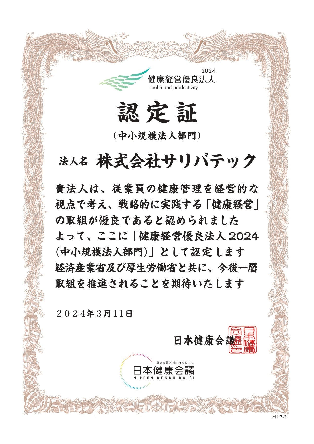 ■サリバテックの健康経営宣言