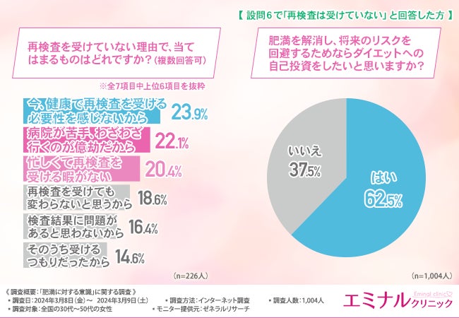 最後に、「肥満を解消し、将来のリスクを回避するためならダイエットへの自己投資をしたいと思いますか?」と質問したところ、約6割の方が『はい(62.5%)』と回答しました。