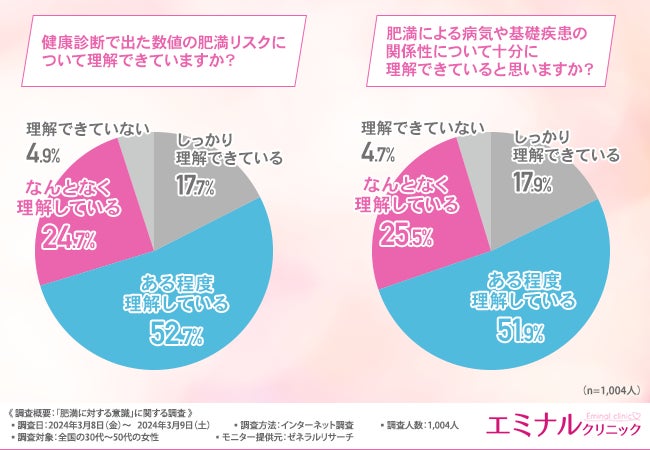 肥満が病気や基礎疾患につながることを漠然と理解している方が多数であり、しっかりと理解できている方は少数派であることが明らかになりました。