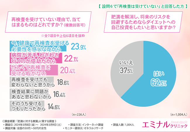 そこで今回、美容医療サービスを提供するエミナルクリニック(https://eminal-clinic.jp/lp01/medicaldiet/)は、全国の30代~50代の女性を対象に「肥満に対する意識」に関する調査を実施しました。