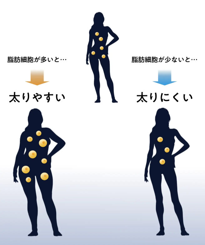 つまり、痩せやすさ・太りやすさは『脂肪細胞の数』で決まります。