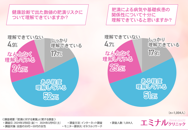 肥満が病気や基礎疾患につながることを漠然と理解している方が多数であり、しっかりと理解できている方は少数派であることが明らかになりました。