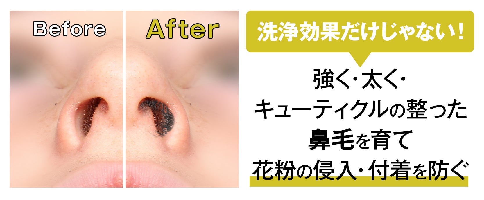 ②持続性!スカルプDの育毛成分「スカルプD EX」配合。継続使用で鼻毛を育て花粉に強い鼻腔内環境へ 1週間継続的に使用することで鼻毛のキューティクルを整え、太く・濃く強化することで花粉(アレルギー物質)が鼻腔内に入り込むことを防ぎ、99.9%シャットアウトすることができます。