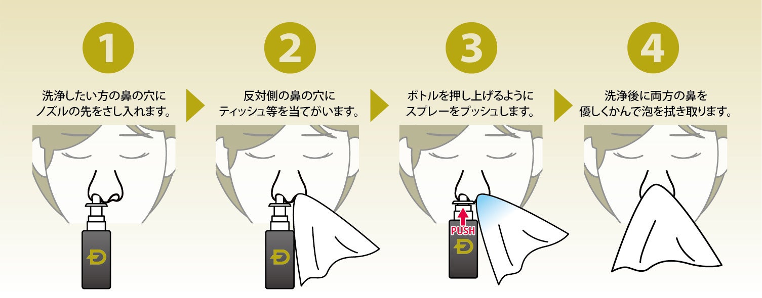 鼻毛専用シャンプーのためだけに開発した特殊ノズルによって、鼻腔内を効率よく洗浄することができます。