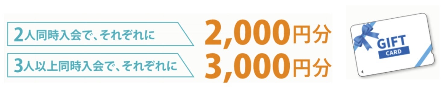 また、2名以上で同時にご入会いただくと入会者様それぞれにギフトカードをプレゼントするペ ア入会キャンペーンを実施。
