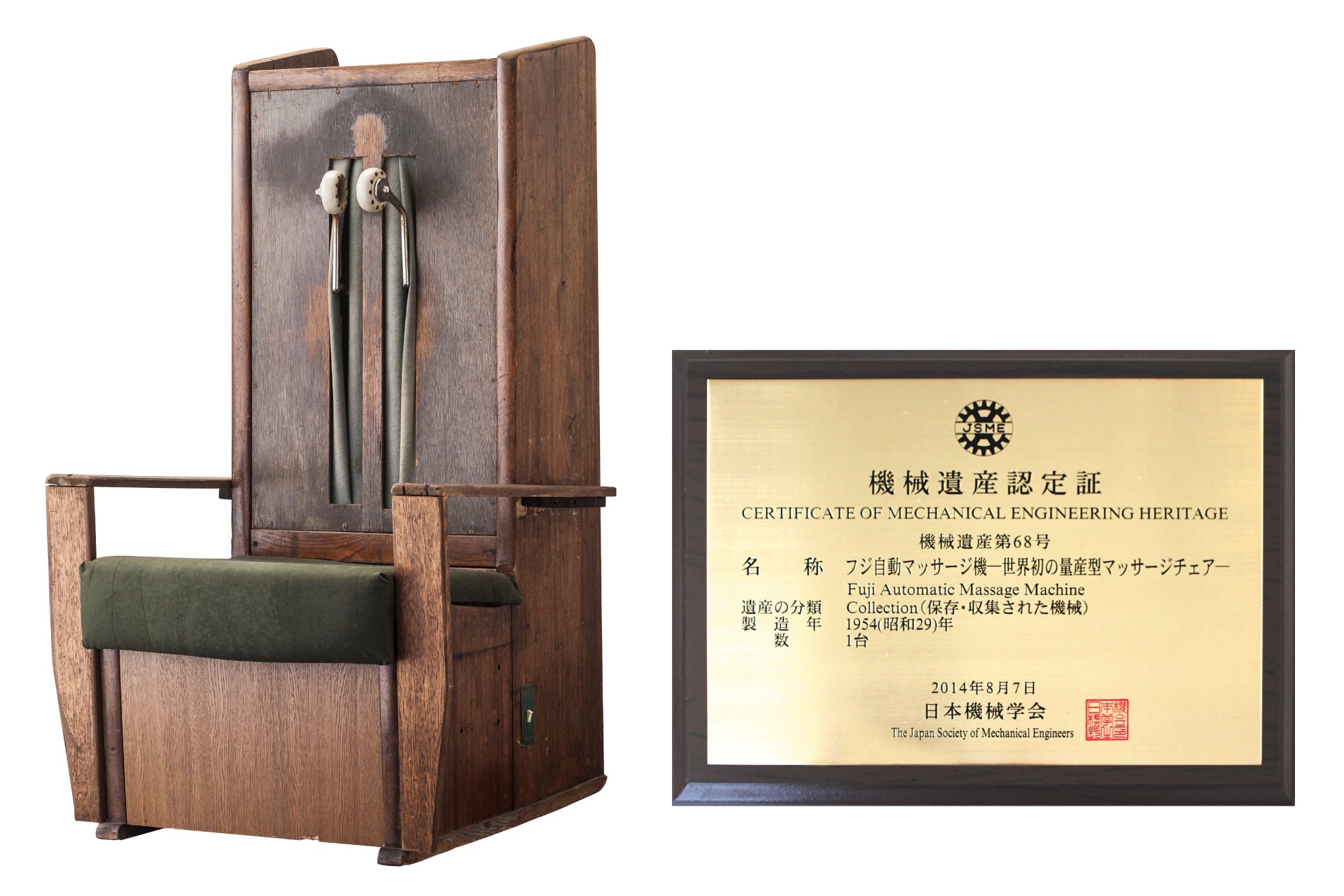 フジ医療器のマッサージチェア第一号機は、マッサージチェアのルーツとして象徴的な存在であり、歴史的意義がある貴重な文化遺産であるとして2014年に「機械遺産第68号」に認定されました。