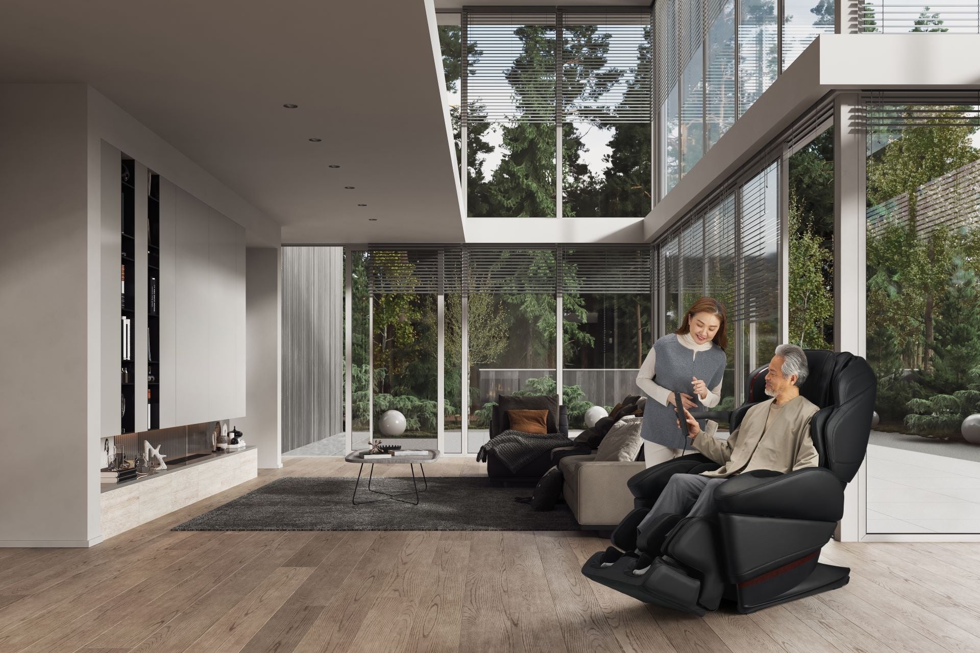 AIによる繊細なもみ心地を実現した「5D-AIメカPLUS」、一人ひとりに合わせてマッサージを最適化する「AIダブルセンシング+」、リラックスした寝姿勢で心地よいマッサージができる「トータルリラックスポジション」など、当社最高峰クラスのマッサージ機能を搭載しており、日々の体の変化に合わせたトータルボディケアを行うことができます。また、その時々の疲れや気分、生体情報をもとにAIが最適なマッサージを生成してプログラムを随時更新する「アプリモード」や、耳元に向けられ包み込まれるような贅沢な音響空間を体感できるBluetooth®対応スピーカーも搭載しており、特別なマッサージ体験をお楽しみいただけます。
