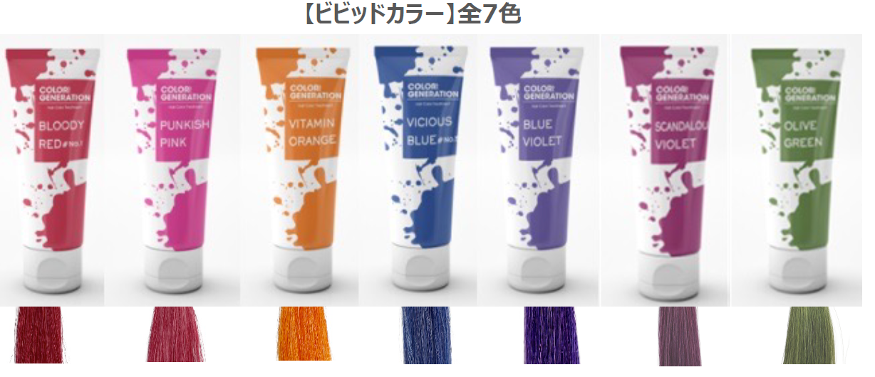 「COLORR GENERATION(カラージェネレーション)」は、シャンプー後に塗るだけで簡単にカラーアレンジができるトリートメント剤で、サロンでのカラーリングにも負けない発⾊を実現します。⾃宅で⼿軽に使⽤でき、鮮やかなカラーを⻑くキープできるため、多くの⽅から⽀持を得てきましたが、更なる⾊持ちの良さや発⾊性、ダメージケアなど細かな課題を⾒直し、パッケージも新たにリニューアルいたしました。春の王道⾊であり今季のトレンドカラーでもあるピンクやオレンジ、旬の透明感漂うブルーバイオレットなどのビビッドカラー7⾊と、柔ら
