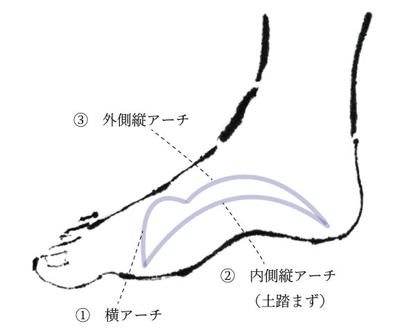 足裏は凹凸(アーチ)があり、そのアーチ機能によって体重を分散し、バネ機能、筋肉の保護の役割をしています。