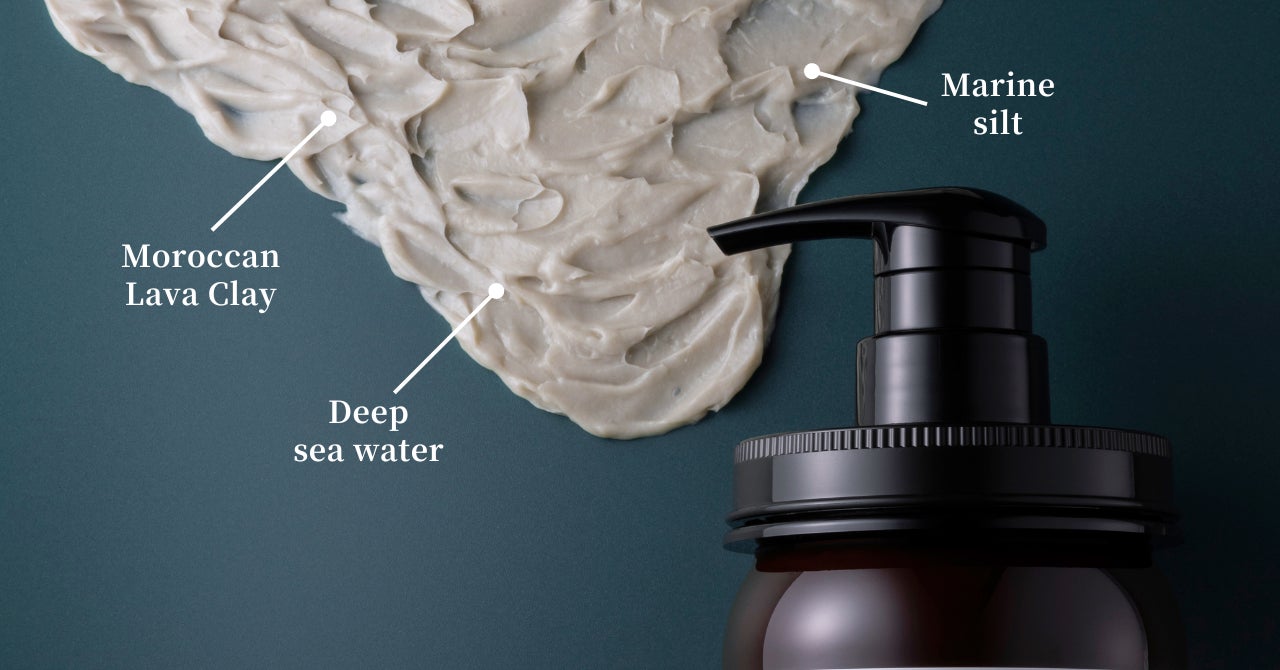 100%天然、海由来のミネラル成分と吸着効果の優れた溶岩クレイ(泥)が頭皮と髪を優しく洗い上げ、汚れをしっかりと落としながら海の恵みを存分に詰め込んだミネラル成分、補修効果の高い植物オイルで髪をケアし、気持ちをリラックスさせます。洗いあがりもしっとりまとまるので、コンディショナーやトリートメントいらず。