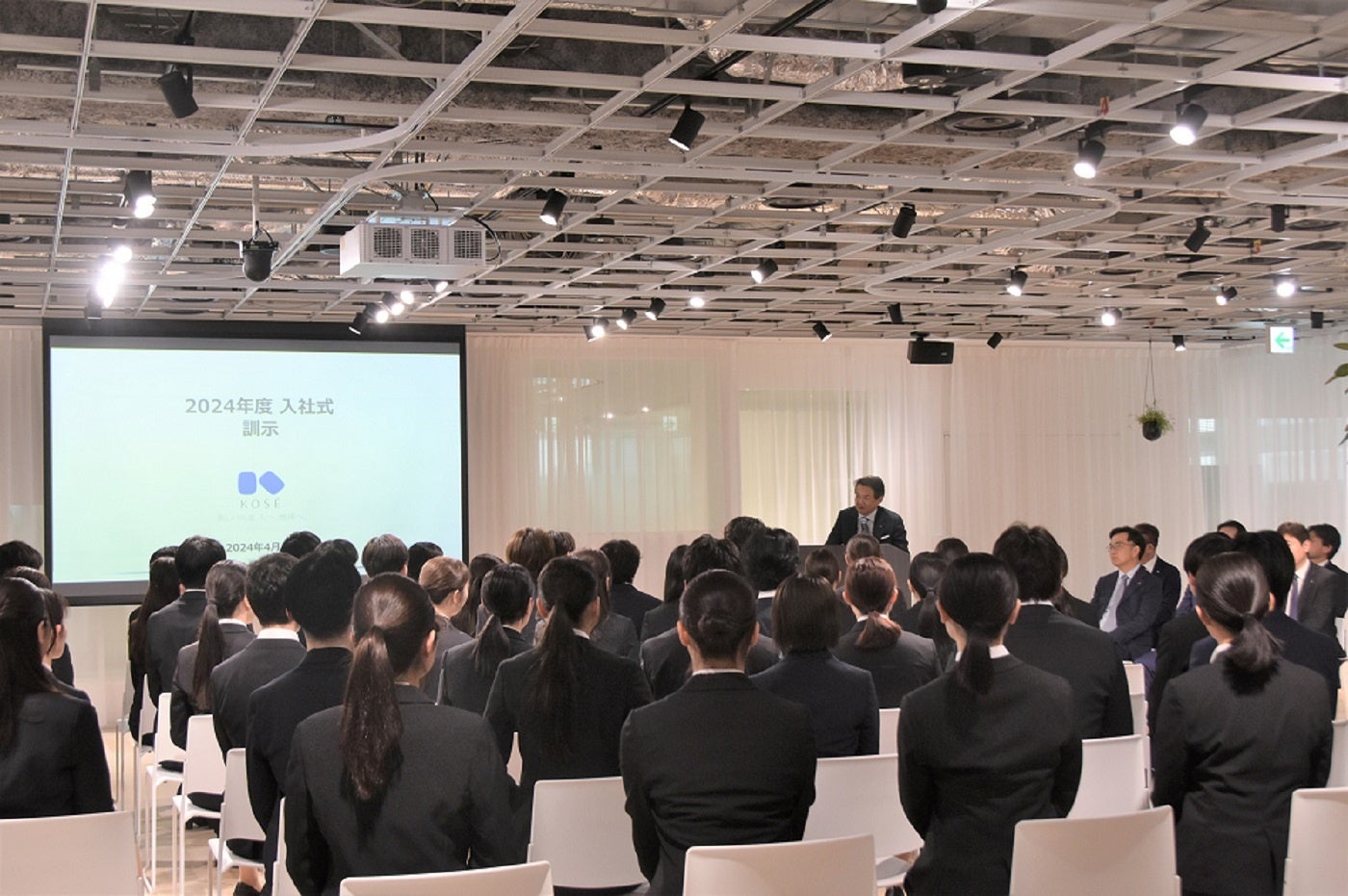 株式会社コーセー(本社:東京都中央区、代表取締役社長:小林 一俊)は、4月1日に本社にてグループ会社3社合同(※1)での「2024年度 入社式」を行いました。今年度の採用は、3社合計で52名です。入社式では、代表取締役社長 小林 一俊より以下の内容の訓示を行いました。