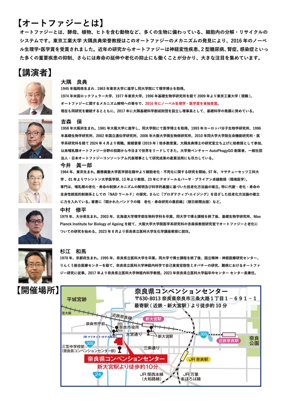 今回はオートファジーのメカニズム解明への寄与で2016年にノーベル生理学・医学賞を受賞された大隅良典教授にも登壇いただきます。