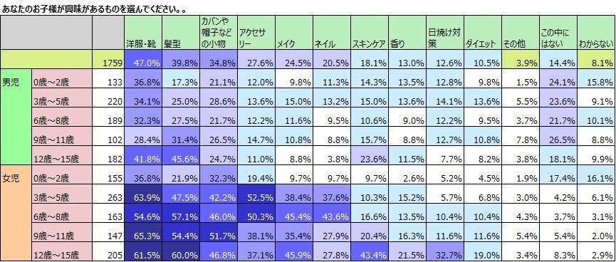 女児の日焼け対策への興味は12歳で増加