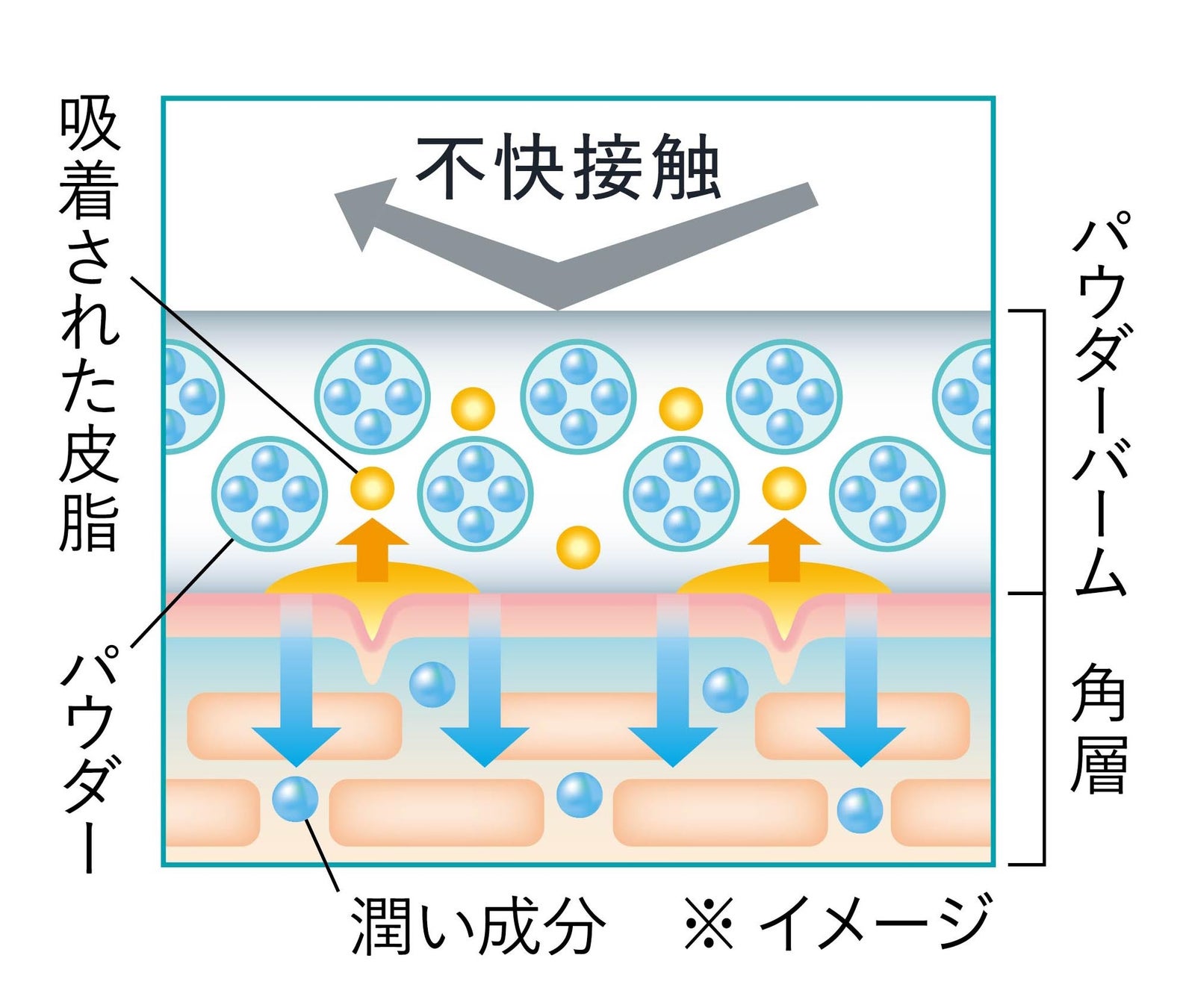 肌の皮脂や水分に反応して潤い成分(セラミド機能成分*1)を放出する、花王独自の「セラミドケア*2パウダリー処方」により、肌表面の汗や余分な皮脂などを吸着しながら、肌(角層)には潤いを補給することが可能となりました。