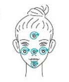 1.適量(長さ約2cm)を、顔の5か所に。指のはらで、バームを軽く円を描くように広げる。