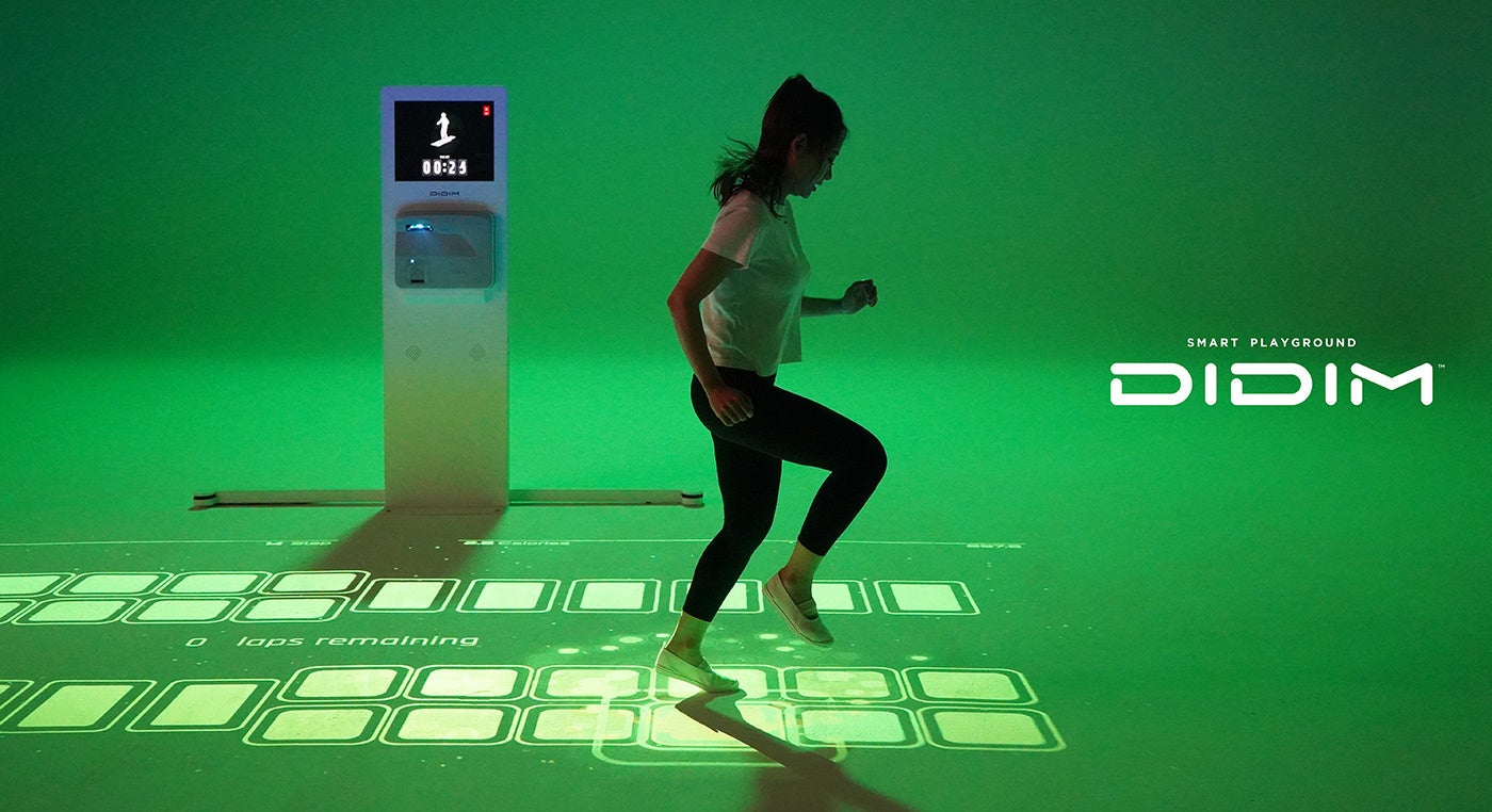 DIDIMは、韓国企業が開発したAR型の室内運動プラットフォーム。床を舞台に使用することで、身体だけでさまざまな運動が楽しめる。開発元の韓国ではフィットネスジムを始め、ショッピングモールやバー、ゲームセンター、屋内運動場など100以上の機関で運用され、優秀ゲーム賞やベンチャー創業革新商品、優秀スポーツ企業など数々の賞にも輝く。日本国内では、正規代理店の株式会社エム・ディ・シーが2022年10月より販売およびレンタルを開始。
