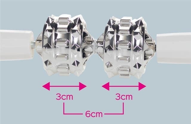 幅約3cmのローラーがダブルに連なることで、程よい大きさの約6cm幅で、アプローチ!広くて大きい部位から小さく細かな部位までケアできます♪