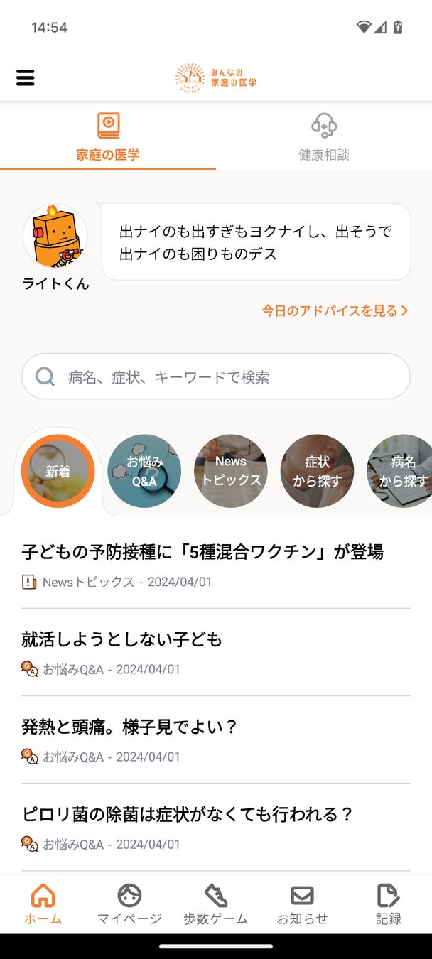 健康に関する様々な不安や悩みに寄り添うヘルスケアサービス「みんなの家庭の医学」は、現在、多くの皆様にご利用いただいています。4月1日、ホーム画面が大幅リニューアルとなり、さらに使いやすくなりました。