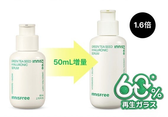 人気導入美容液「グリーンティーシード ヒアルロン セラム」から、通常サイズを50mL増量した130mLが2024年4月1日(月)より発売中。