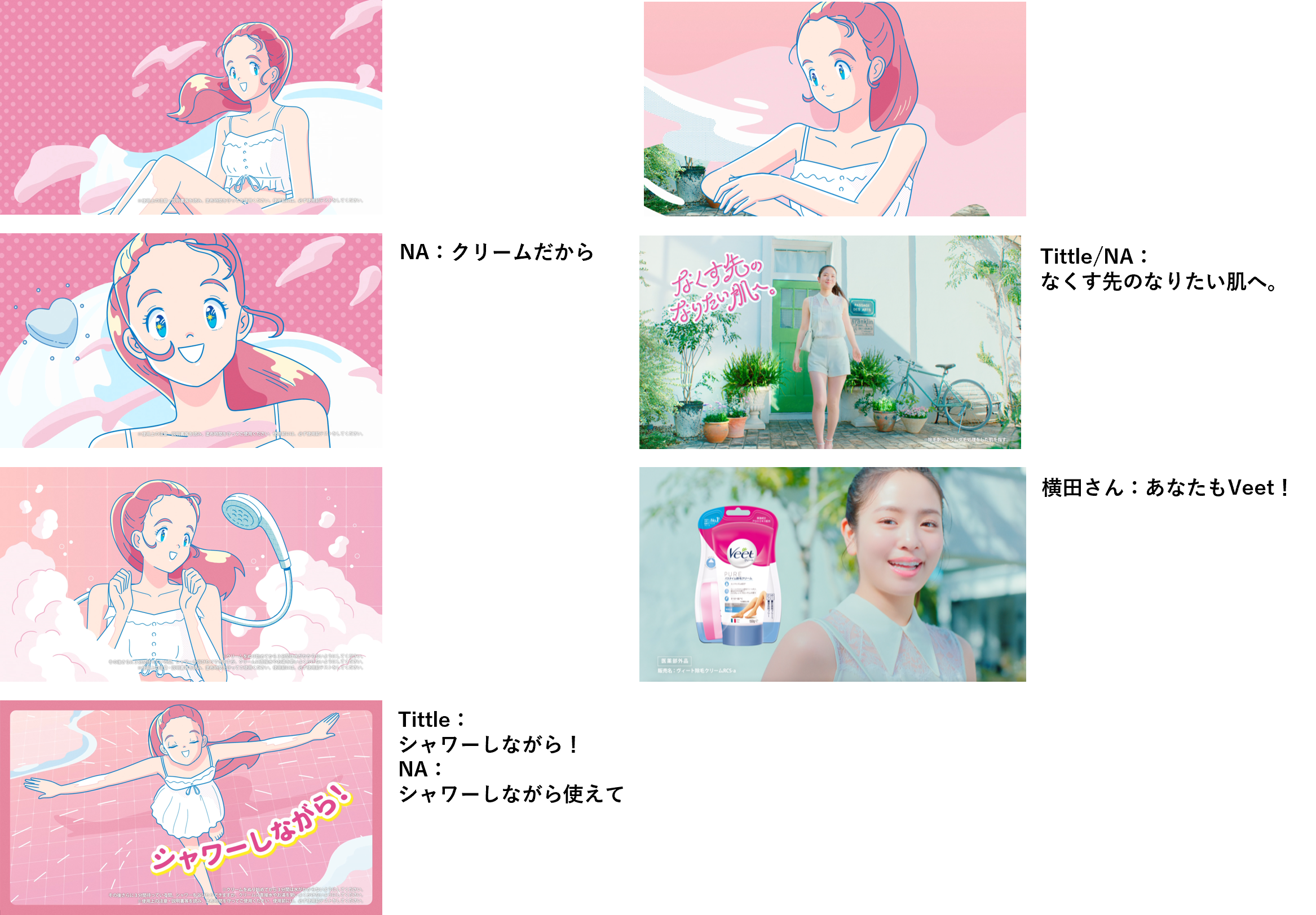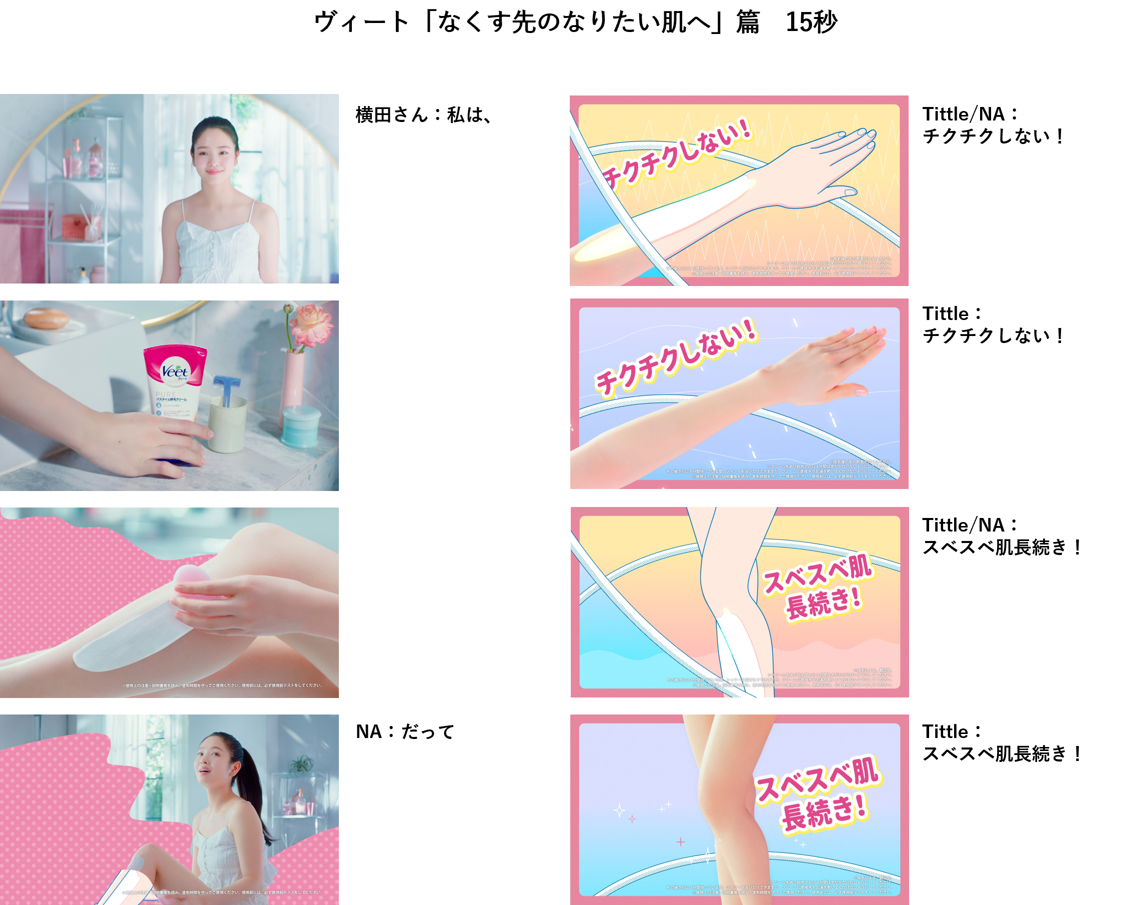今回の新CMはバスタイム中をイメージし、実写とアニメーションの世界を融合させました。明るくポップな描写の中で、ヴィートのオススメポイントやスベスベ肌(※1)を手に入れ、自信をつけた女性を描いています。また4月5日(金)より順次配信されるWEB動画広告では、水着や指輪を付けるシーンなど、ムダ毛が気になるシチュエーションをリアルに描き、ムダ毛のケアならヴィートが便利だという事を消費者にダイレクトに訴求しています。今年からヴィートメンのイメージキャラクターをしている鈴木康介さんとのコラボレーション動画にもご注目ください。