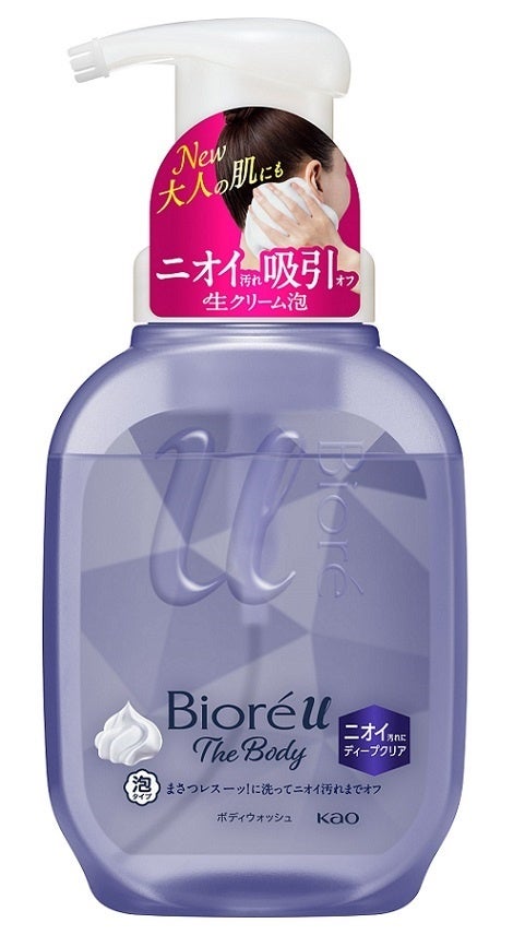 そこでこのたび、“まさつレス”な手のひら洗いを一貫して提案してきた「ビオレu ザ ボディ」シリーズから、1年中ニオイ汚れが気になる方に、『ビオレu ザ ボディ 泡タイプボディウォッシュ ディープクリア』を改良新発売します。「ニオイ汚れ吸引オフ生クリーム泡」が触れるだけで、ニオイの元となる皮脂汚れを吸引し、洗い流します。長持ち泡が洗浄時のまさつを低減するので、かさつきがちな肌も “まさつレス”にやさしく洗えます。