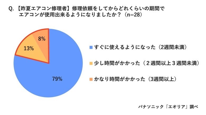 ・昨年夏時期(6~8月)にエアコンを購入した人の3割(30%)、修理した人の2割(21%)が、発注から使用まで2週間以上かかった『エアコン待機者』に