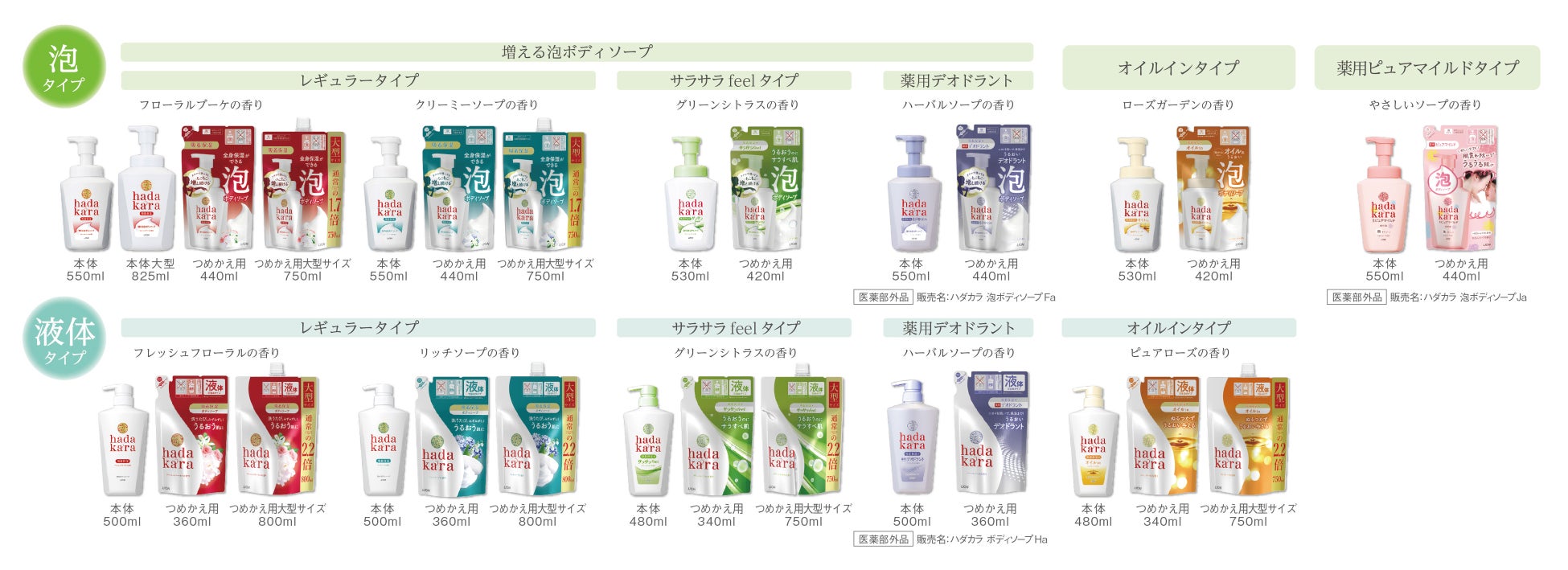 ※6 (医薬部外品)販売名:ハダカラ ボディソープHa 下線部が本リリースの数量限定品