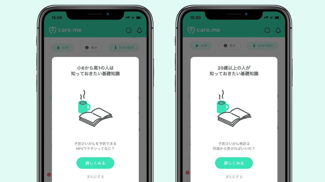 子宮頸がん予防に向けた啓発活動の一環として、「みんパピ!」 と協働し、アプリ利用者の年齢に応じて、HPVワクチンの定期接種や子宮頸がん検診についての医師監修記事を定期的に表示しています。