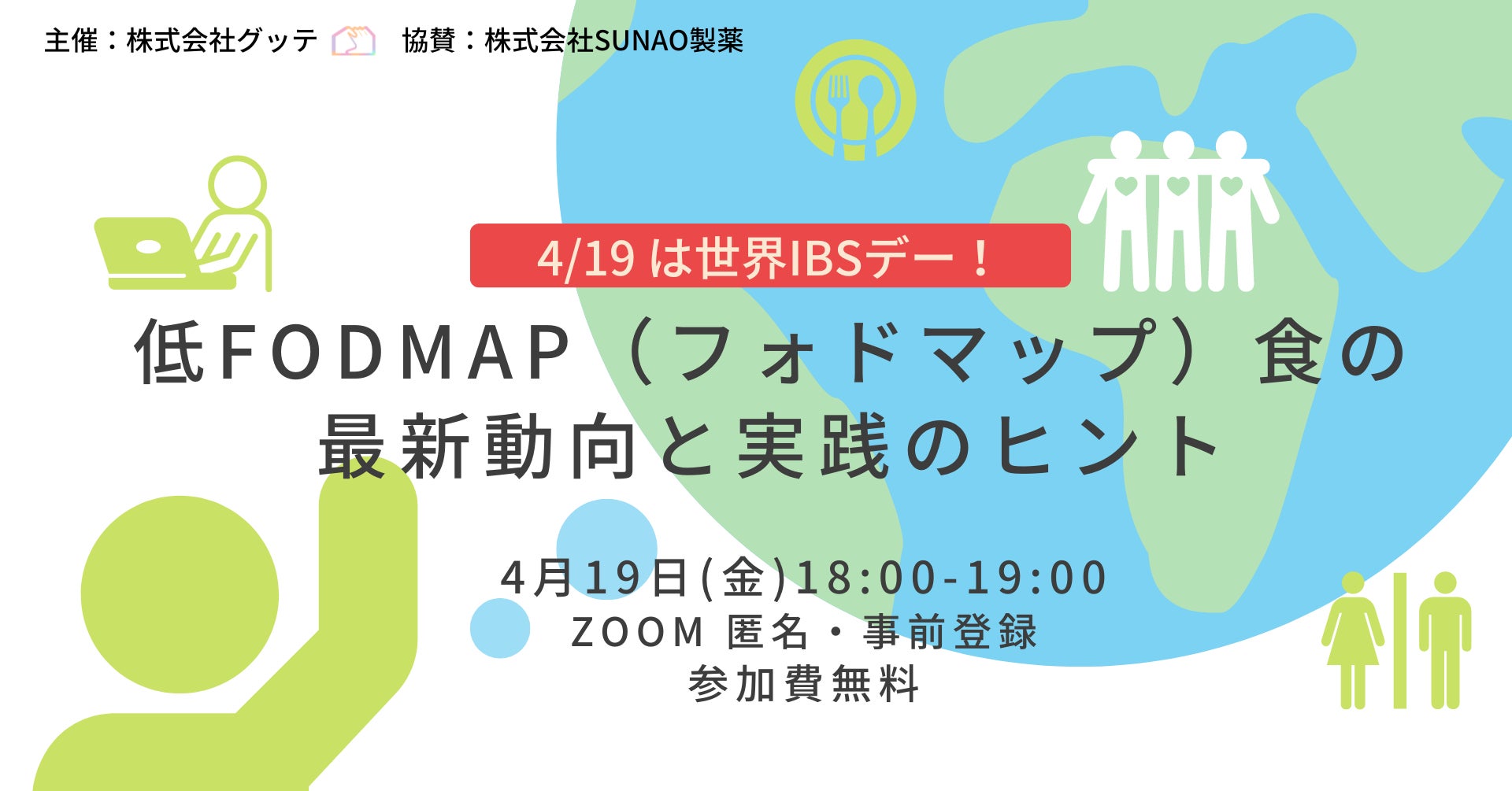 目的:世界IBSデーに合わせてオンラインイベントを開催し、過敏性腸症候群の食事療法である低FODMAP(フォドマップ)食に関する最新情報と実践するためのヒントを提供します。このイベントは、IBSを抱える人々やその家族、関心を持つ方など、広い層の方々に有益な情報を提供することを目指しています。