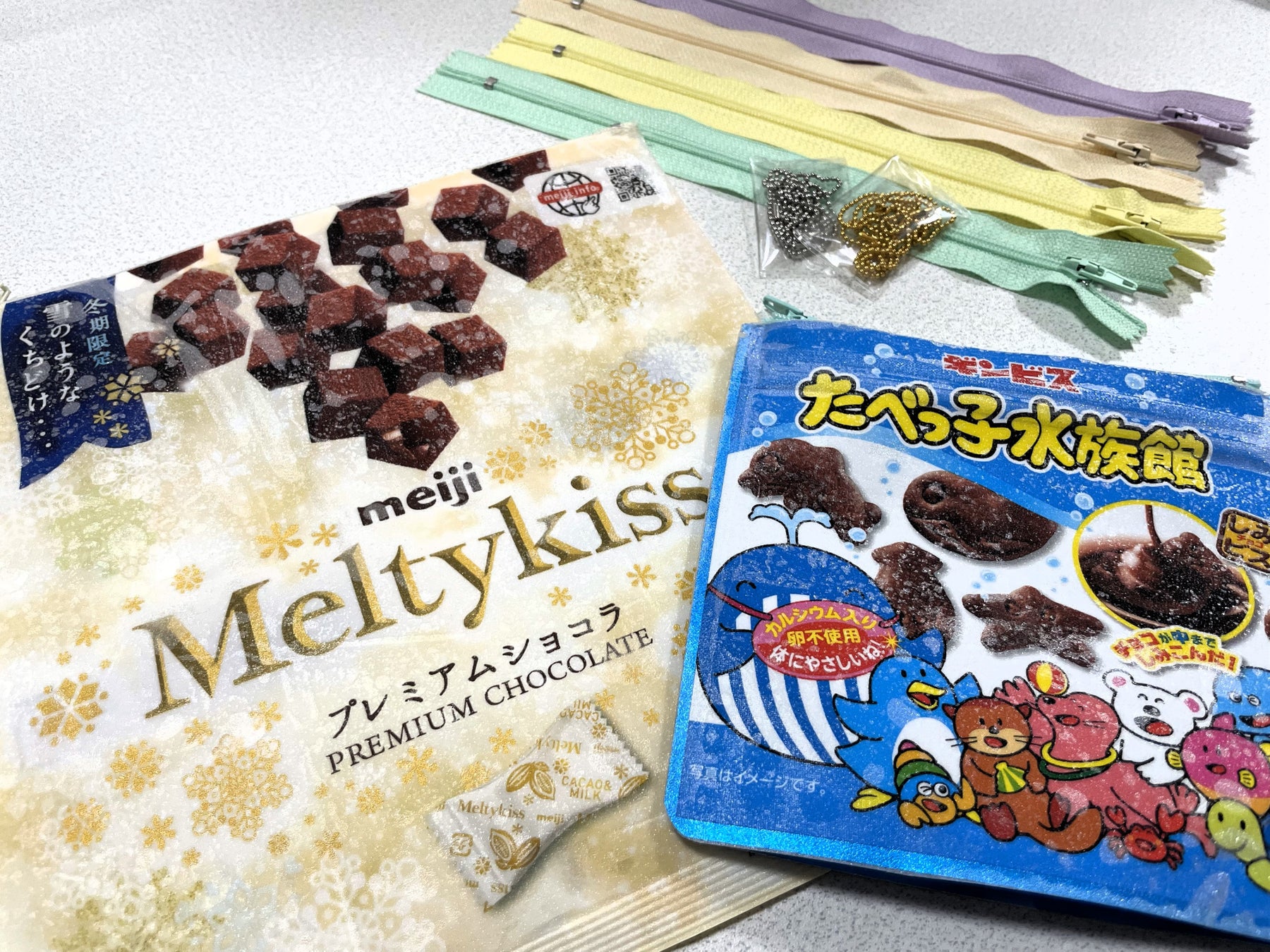 かわいくて捨てるのがもったいないお菓子のビニール袋を、いつも持ち歩けるポーチに生まれ変わらせるワークショップを開催いたします。