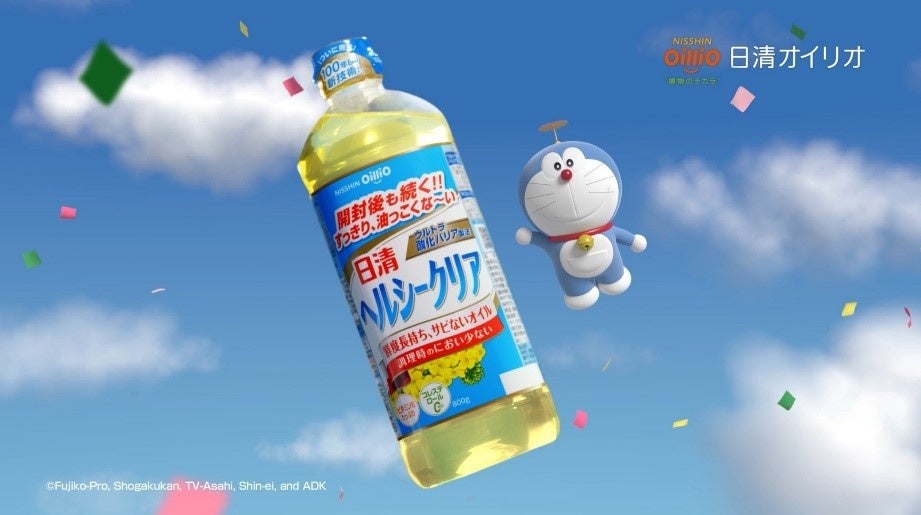 CMキャラクターに「ドラえもん」を起用 酸化対策で、開封後もオイルのおいしさ続く 「日清ヘルシークリア」新CM『NEWSなオイル』篇を公開