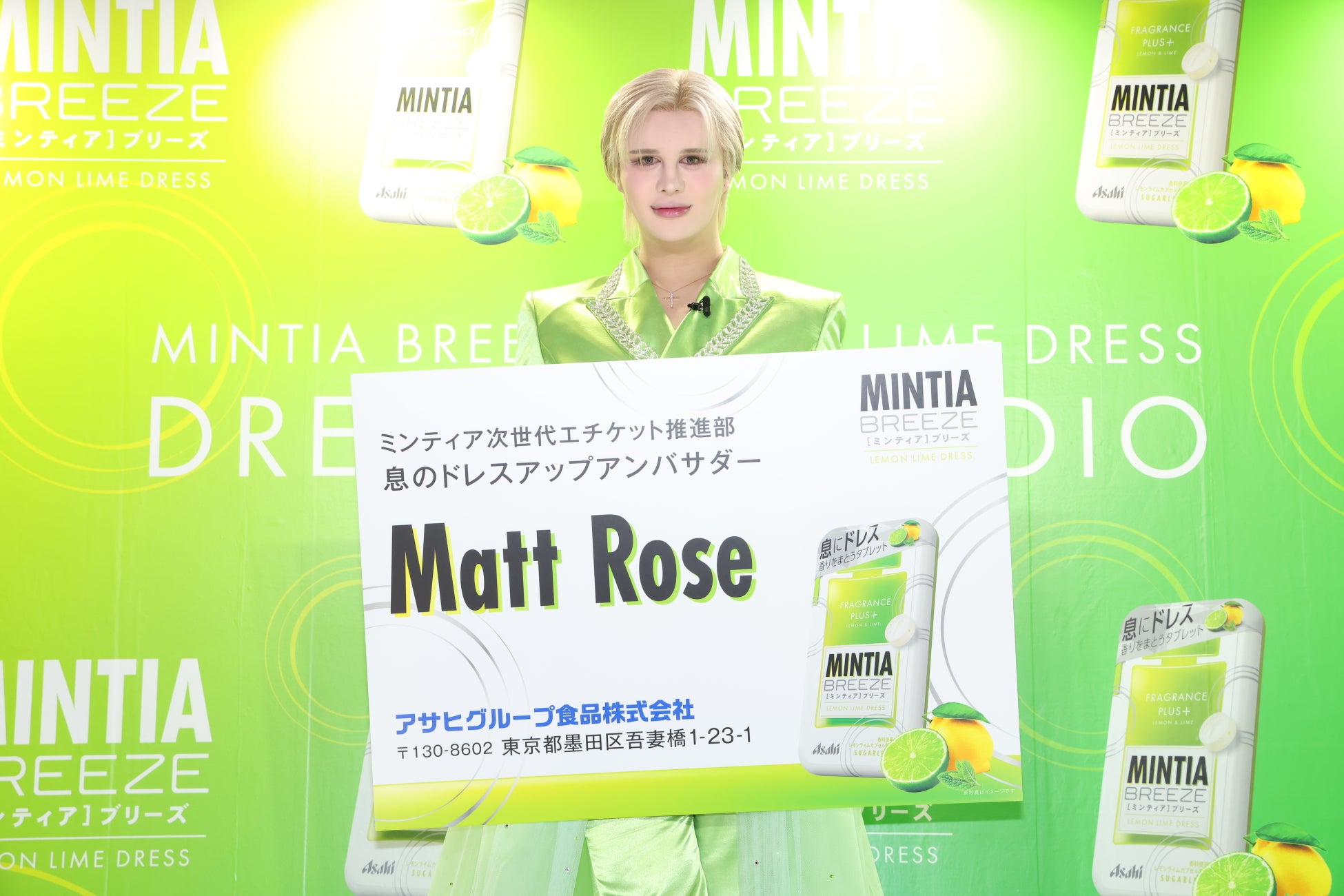 イベントの開催を記念して、美のアイコンとして幅広い世代から支持を集めるMatt Roseさんをお招きし、『ミンティアブリーズ レモンライムドレス』PR発表会を2024年4月4日(木)に渋谷モディ 店頭プラザにて実施いたしました。