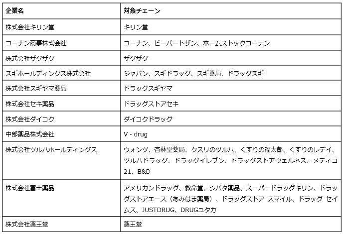 次に記載のある店舗が対象となります。