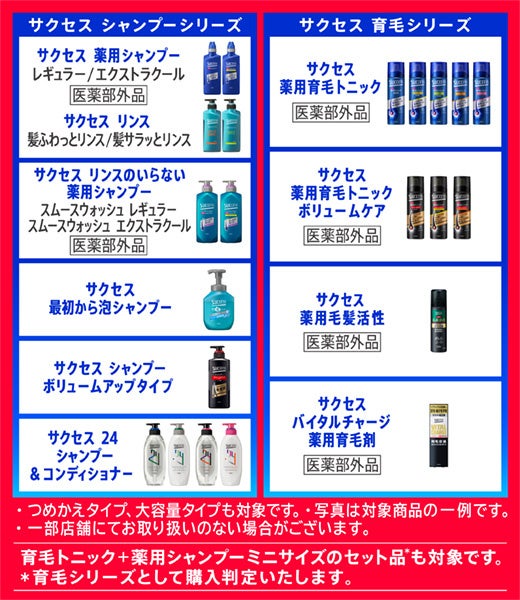 「サクセス」のシャンプーシリーズと育毛シリーズの全商品