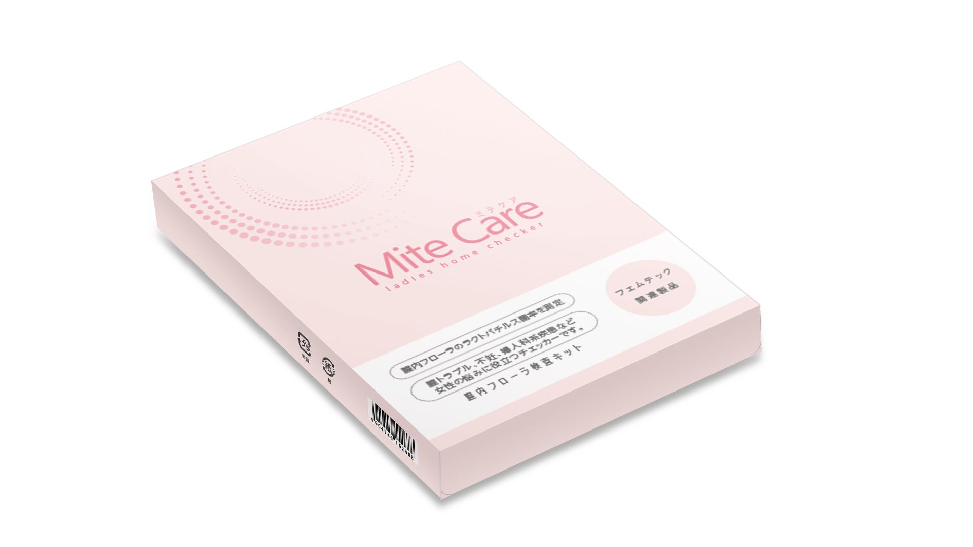 MiteCare(ミテケア)レディースホームチェッカーは、不妊原因の可能性があるとされる膣内フローラにおけるラクトバチルス菌の割合を、自宅でスマホを使って手軽にチェックできるフェムテック商品です。