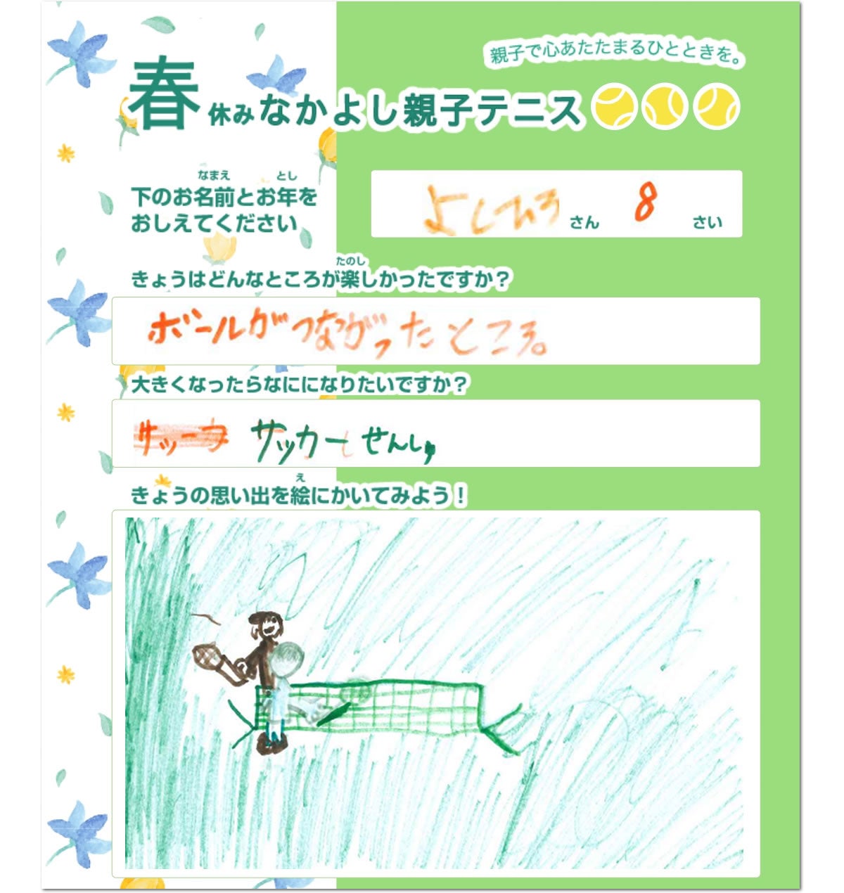 「おとうさんにテニスでかててうれしかった」