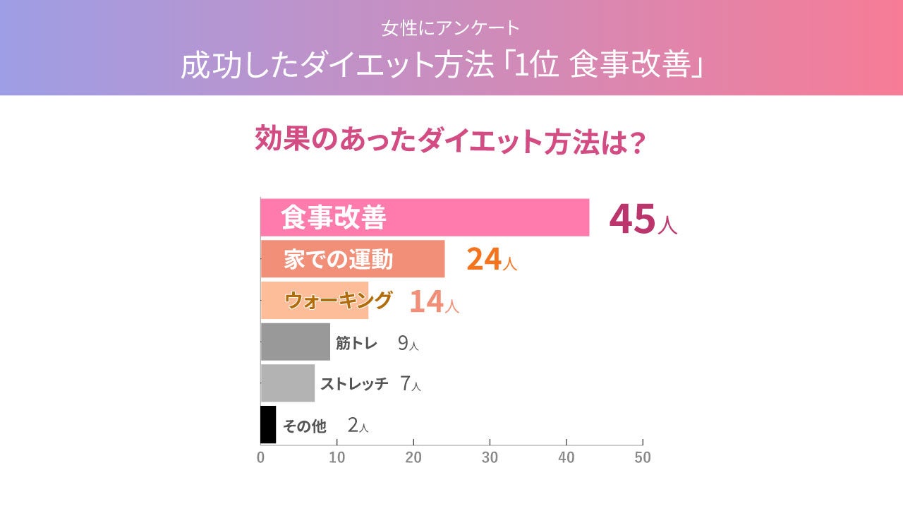 成功したダイエット方法「1位 食事改善」「2位 家での運動」