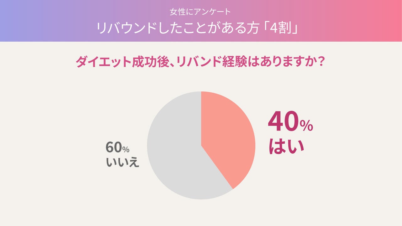 ダイエット成功できたものの、4割の方がリバウンドしてしまっている結果になっております。
