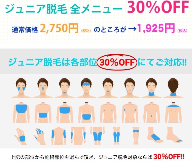 全部位都度払い30%OFFで脱毛が行えます。NAXでの特別なジュニア価格で大人よりもお得に早得!