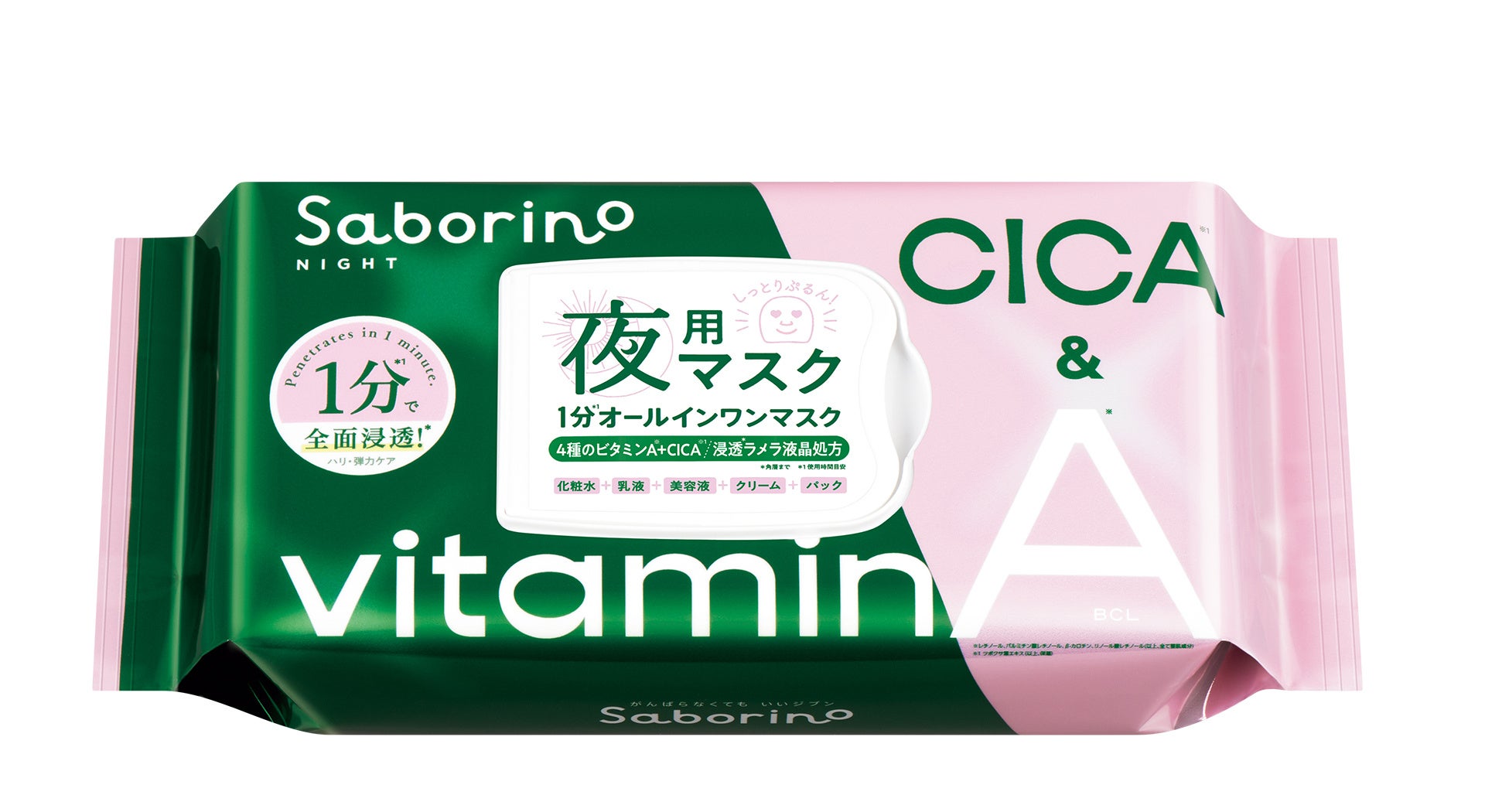 また4種のレチノールとCICAでハリと弾力も与えられる夜用オールインマスクです。