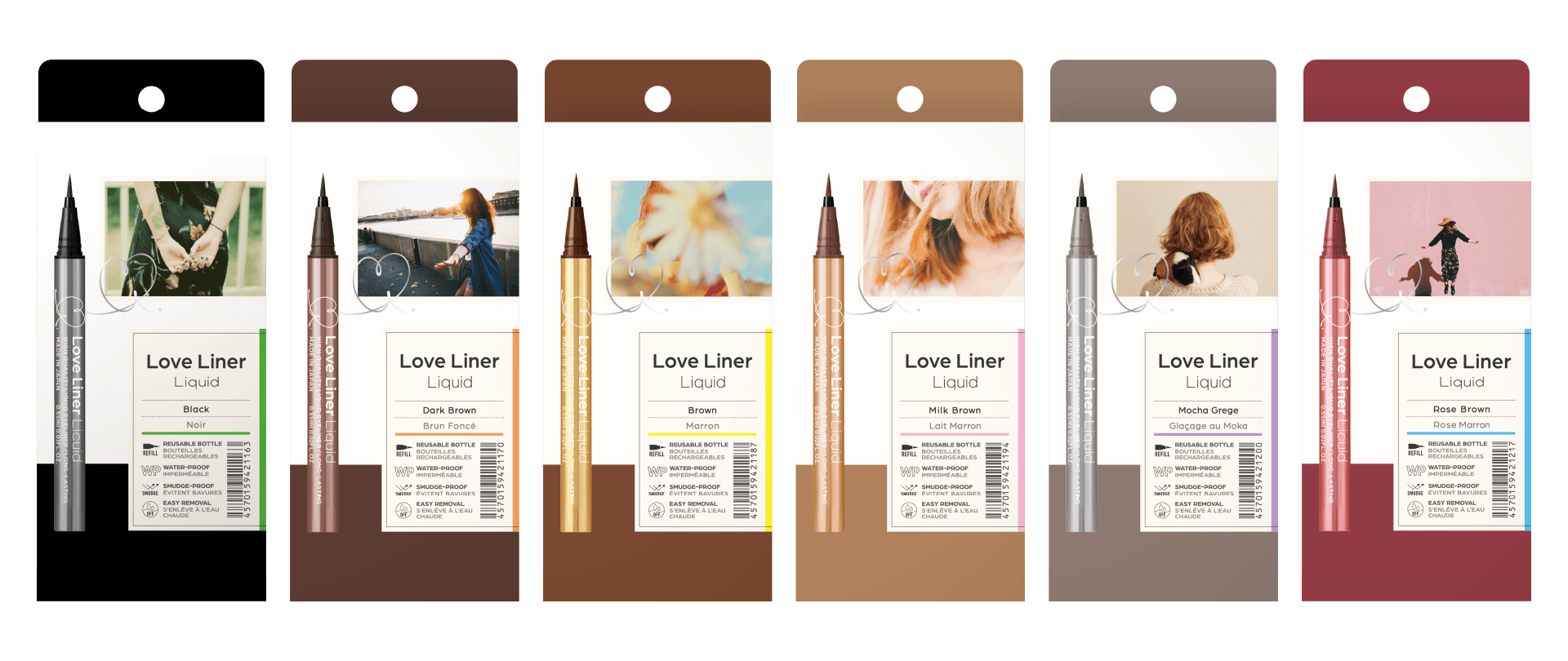 “カワイイ”をテーマとし、日本で数々のベストコスメを受賞している大人気アイメイクブランドです。ブランドの代名詞であるリキッドアイライナーは2023年に誕生15周年を迎え、シリーズ累計出荷本数2,500万本を突破(*2)するなど、多くの女性から親しまれています。描きやすさにこだわった筆と、手ブレしにくいように重さを付けたアルミボトルが特長で、水・汗・涙に強いウォータープルーフ&皮脂・こすれに強いスマッジプルーフ仕様なのにぬるま湯で簡単にオフすることができる、失敗しない(*3)ことで人気のアイライナーです。「カワイイは、未来をかえるよ。」のコンセプトのもと、2022年3月には筆ごと交換できる専用リフィルをつけ替えることで容器を繰り返し使えるリユーザブルボトルに進化。パッケージはプラスチックの使用を極力抑え、環境を考えた素材に変更。資源を守り、ゴミの削減にも貢献するアイライナーにリニューアルしました。