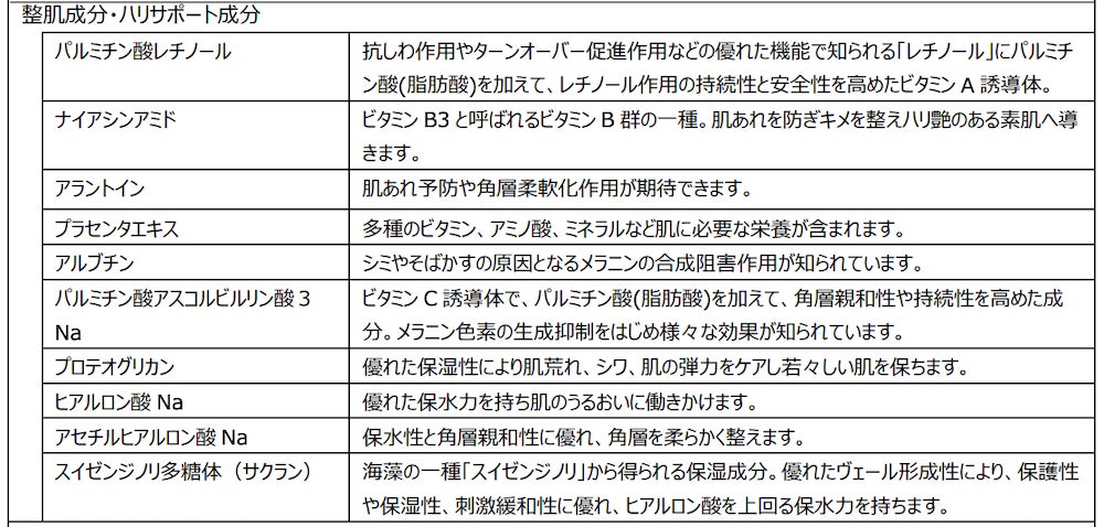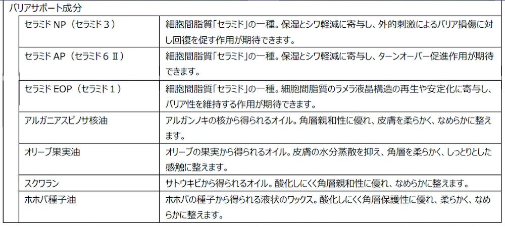 (整肌成分)*7:セラミド NP,セラミド AP,セラミド EOP(バリアサポート成分)*8:スイゼンジノリ多糖体(保湿成分)