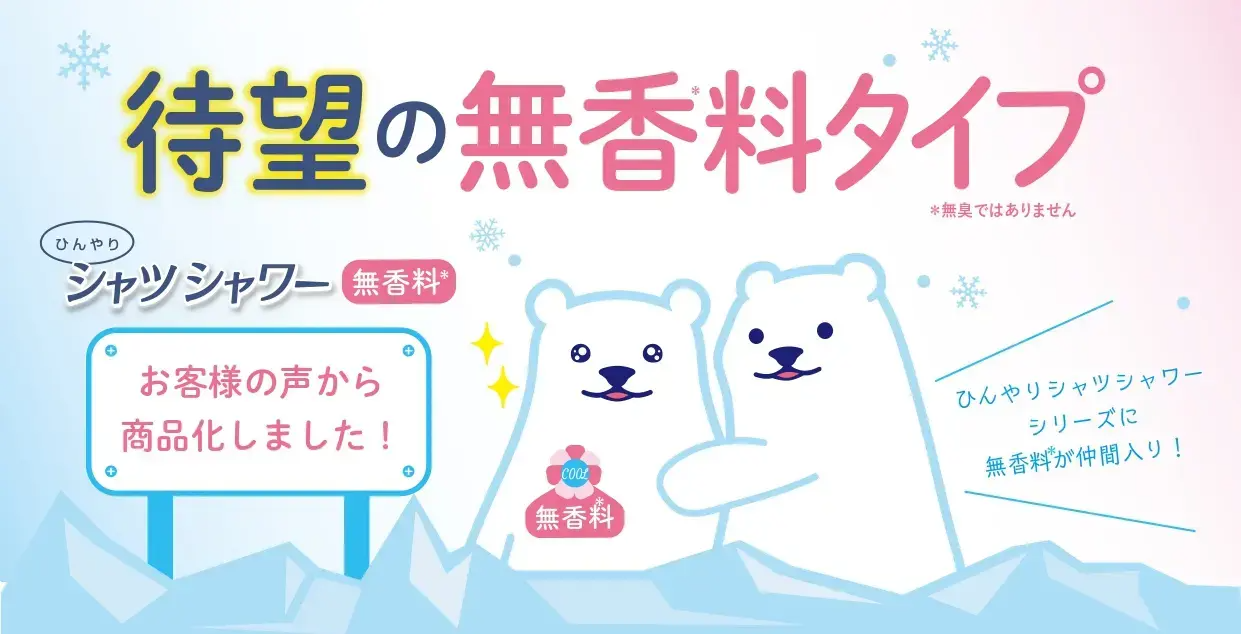 長年ご要望が多かった「無香料※」タイプは、2021年に販売を開始して以来、ニオイを気にするお客さまに圧倒的な支持を得ております。2024年もニオイのやさしいひんやり冷感を是非お楽しみください!