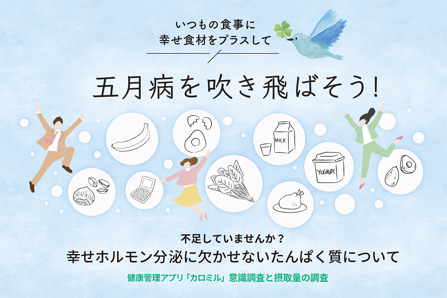 五月病の予防には、「身体のリズムを整える」「適度な運動」「趣味に打ち込む」「悩みを打ち明ける」などが効果的と言われています。今回、皆さんの健康をサポートする健康管理アプリ「カロミル」から、五月病を予防し、心身ともに健康な日々を送っていただくための食生活を中心としたヒントをお送りします。