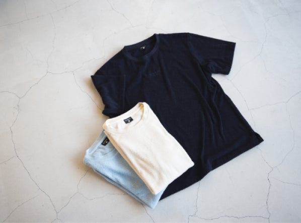 ストレッチ性のある両面パイル素材によりストレスを感じにくい着心地、ふわっとした柔らかい肌触りで、さらっと優れた吸水性を実現しました。